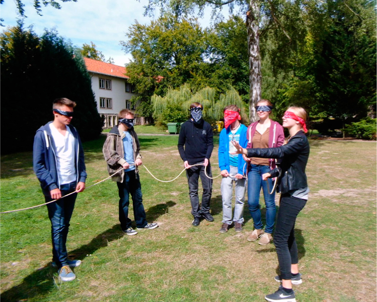 Aber bald dachte niemand mehr daran, als wir erneut in Gruppen eingeteilt wurden, um Menschen-Pyramiden zu bauen und uns gegenseitig durch ein imaginäres Spinnennetz zu tragen. Ob es nun an der Gruppenkonstellation lag oder daran, die anderen doch schon besser kennengelernt zu haben… es war mir weniger schlimm als erwartet, ja man könnte sogar sagen, es hat etwas Spaß gemacht. Darauf folgte das Mittagessen und den restlichen Nachmittag “Freizeit“. Der Abend wurde in kleineren Gruppen sehr unterschiedlich verbracht. Einige versuchten zwar mit aller Macht, aber doch vergeblich, ganze neun Kegel auf einmal umzuwerfen. Andere wiederum haben Karten gespielt oder auch am Steg gesessen und erzählt und so mancher wagte sogar eine kleine Privatnachtwanderung. Am nächsten Morgen waren alle ein wenig müde und wohl auch froh wieder nach Hause fahren zu dürfen. Ja, ja... so eine Schulfahrt hat es in sich…