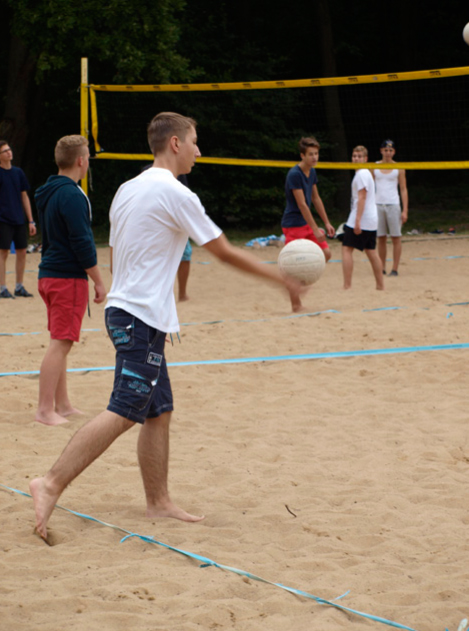 Dann ging es auch schon los: Die Kennlernspiele! Einige waren höchst begeistert, andere hielten sich doch eher zurück. Nach zwei Stunden Nägel aufeinanderstapeln, Papiertürme basteln und mit zehn Leuten auf einem “fliegenden Teppich“ stehend und versuchend nicht herunterzufallen, gab es Mittagessen. Anschließend stand „Sport“ auf dem Plan. Egal ob Fußball, Tischtennis, Frisbee oder Volleyball – einige ganz Mutige trauten sich sogar ins Wasser – alle waren irgendwie beschäftigt und freuten sich auf das baldige Abendessen. Zum Abschluss des Tages waren Gesellschaftsspiele geplant, welche sich nach anfänglicher Unlust